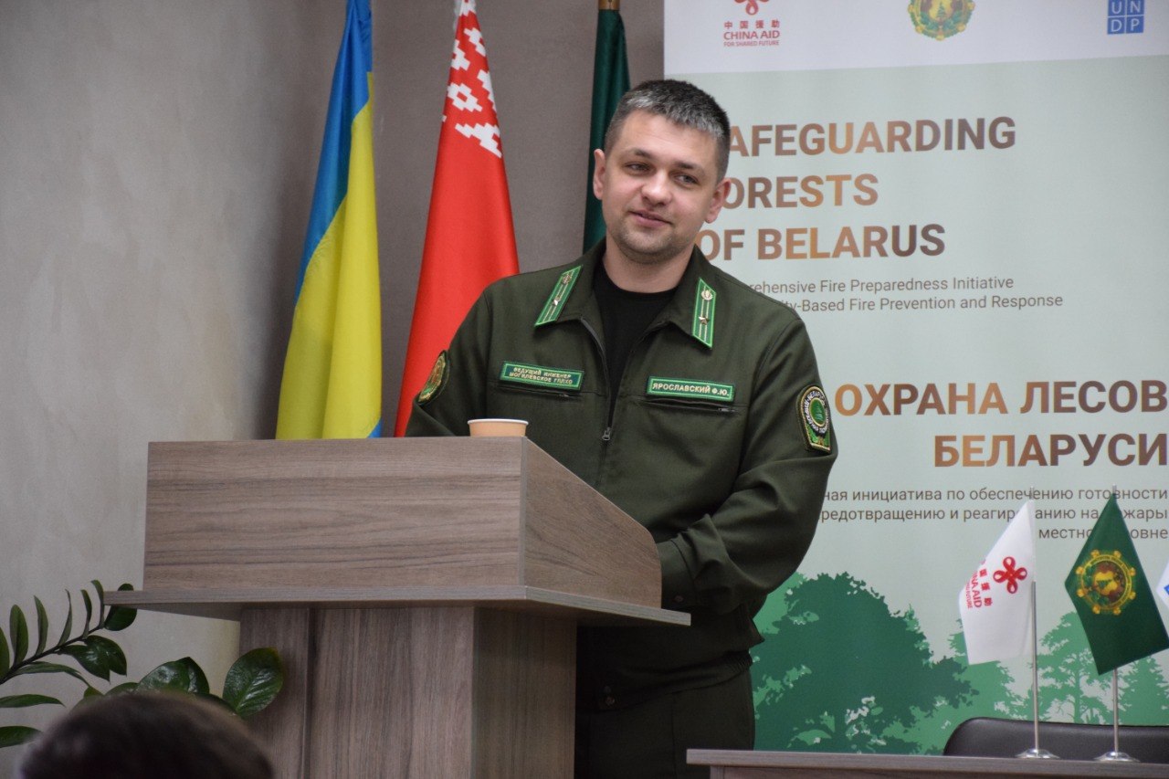 В рамках данного проекта на базе Белыничского лесхоза проведен тренинг с местным населением и учащимися школ Белыничского района. Ведущий инженер по охране и защите леса Могилевского ГПЛХО Ярославский Фёдор подробно осветил тему «Профилактика и раннее обнаружение лесных пожаров».