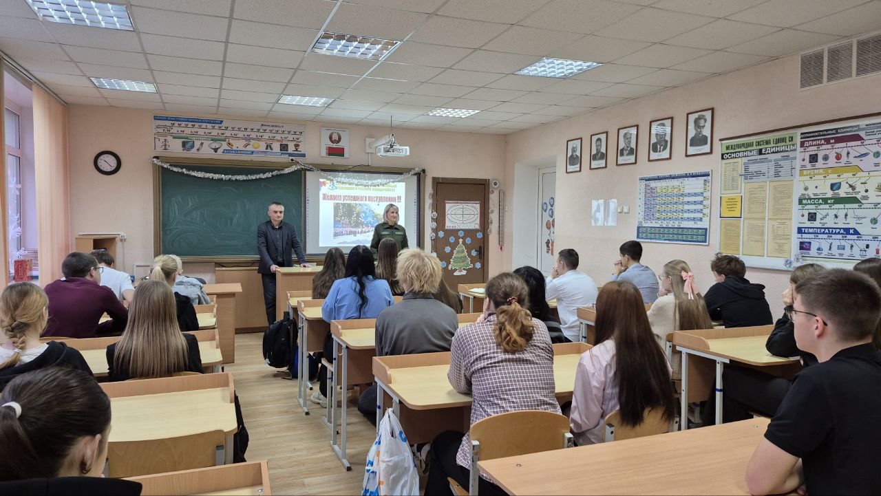 Заместитель руководителя организации по идеологической работе Дроздова Татьяна совместно с представителем БГТУ, заведующим кафедрой лесозащиты и древесиноведения Хвасько Андреем провели профориентационную встречу с выпускниками СШ №1 им.Н.И.Пашковского и СШ №2 г.Белыничи.
