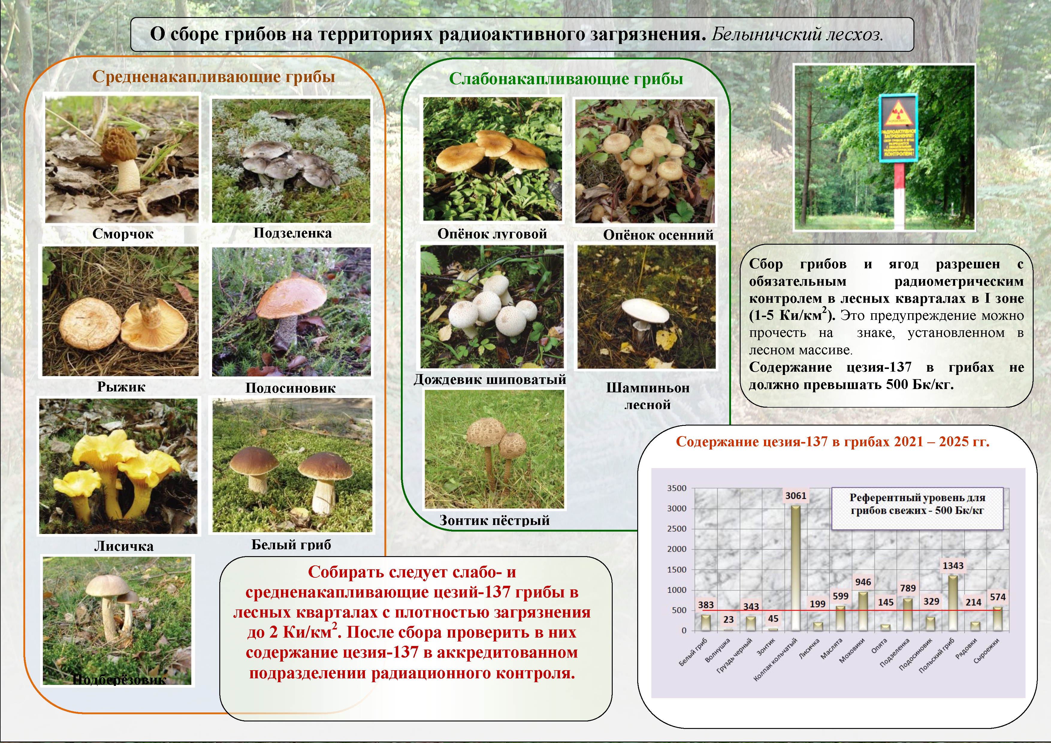 Проведение радиационного контроля пищевой продукции леса - грибов и ягод: